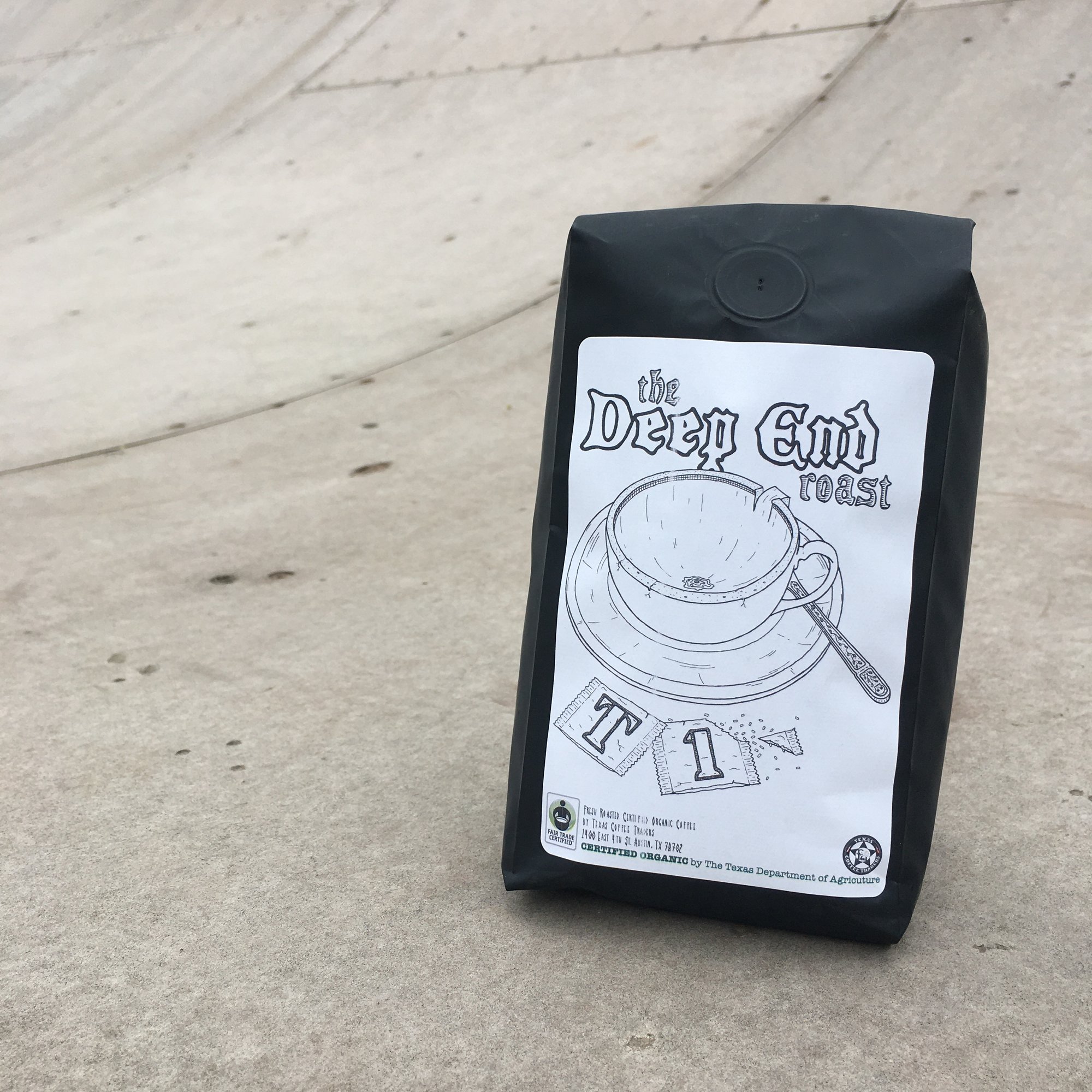 The Deep End awaits you . . . This blend of blonde and medium roasted Ethiopian Sidamo *organic beans will get your morning, afternoon, or evening going right. Proudly roasted by the Texas Coffee Traders on the East Side of Austin. Treat yourself to a cup worth sippin' . . . (Artwork by Shawn Rylander)